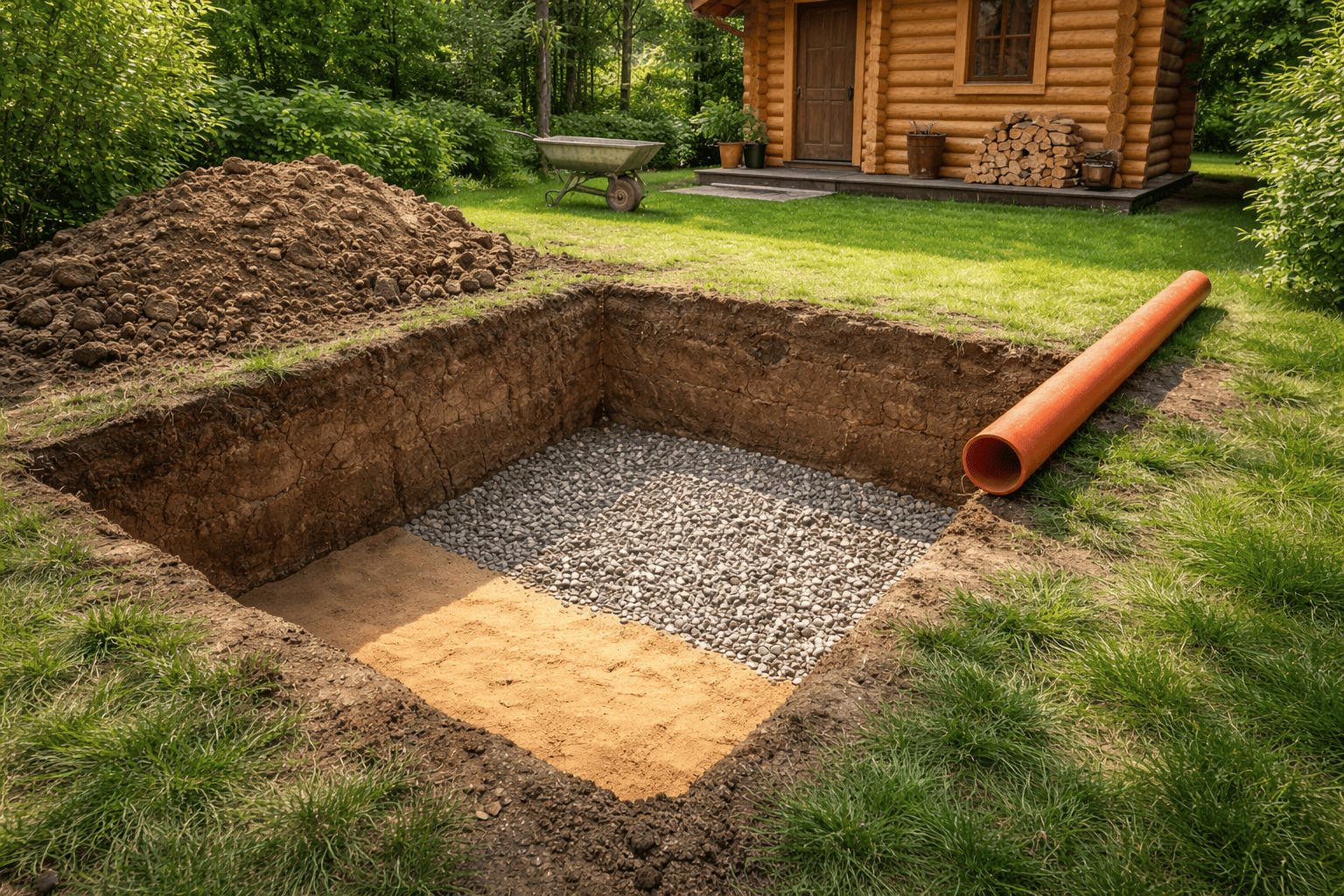 Правильно организованный слив под баню защищает фундамент, грунт и обеспечивает комфорт эксплуатации.