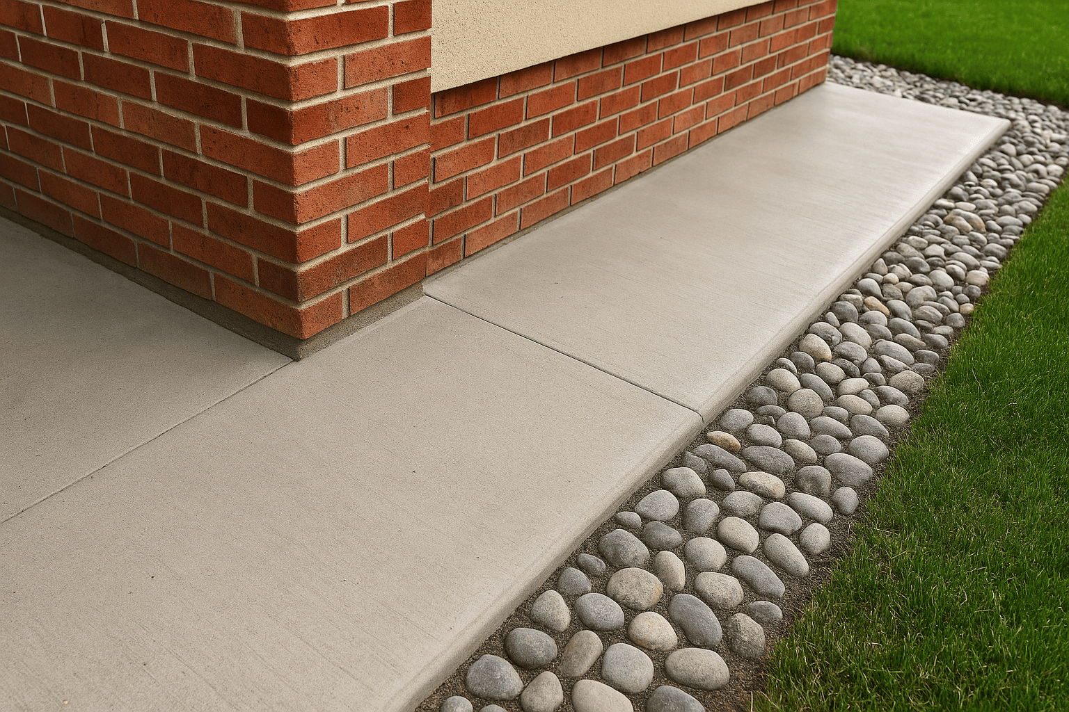 Отмостка — часть фасадной композиции, а не только инженерия. Дизайнерские решения: